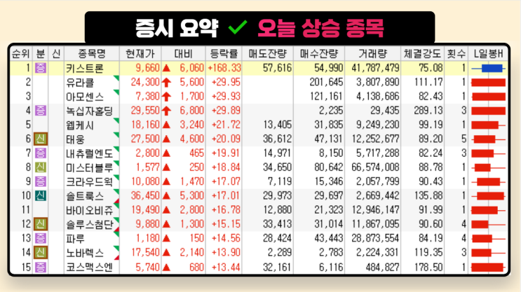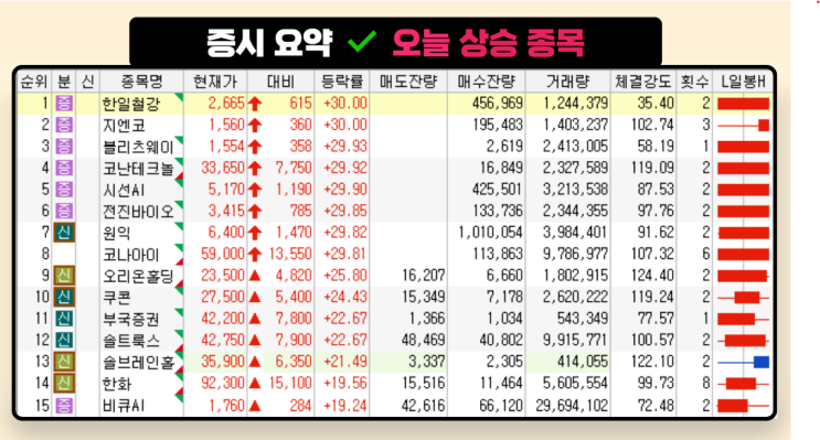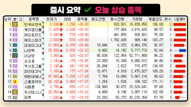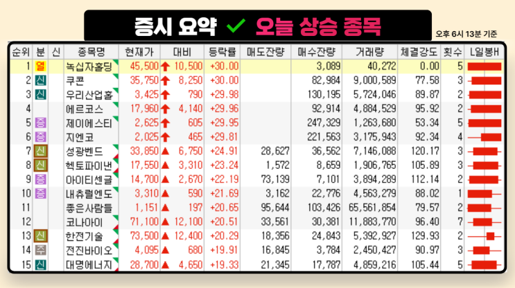 (오후 6시 13분 기준) 52주 신고가 종목 요약 1. 풍력·에너지/SMR 관련 태웅(044490) +20.09% 일부 풍력...