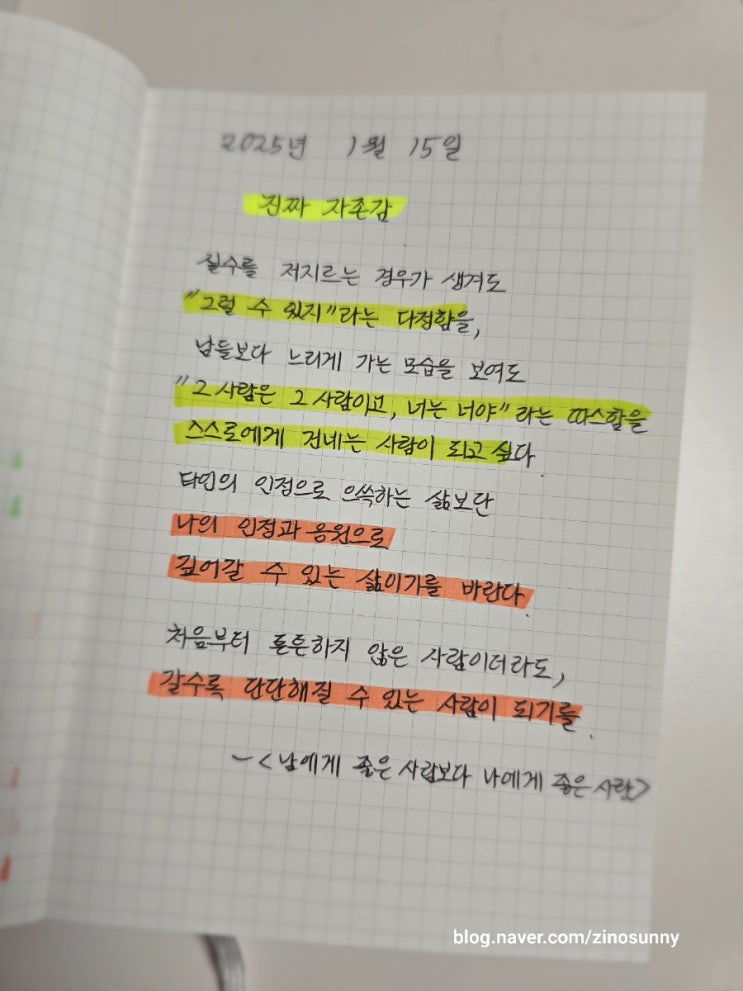[남에게 좋은 사람보다 나에게 좋은 사람_필사] 진짜 자존감