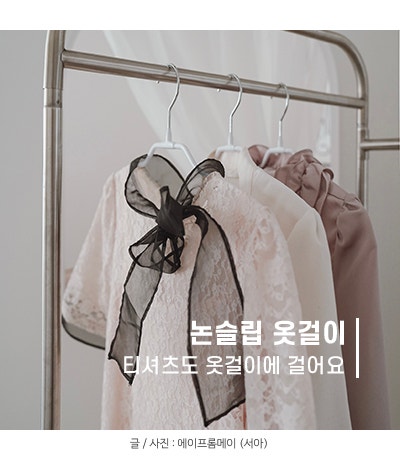 티셔츠, 블라우스도 구김없이 전용 옷걸이에 걸어요. 논슬립 옷걸이 엠부띠끄!