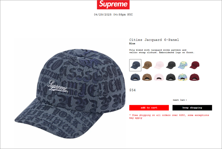 슈프림 모자 워시드 치노 트윌 캠프캡 25SS 인디고 데님 착용샷 (ft.후쿠오카)