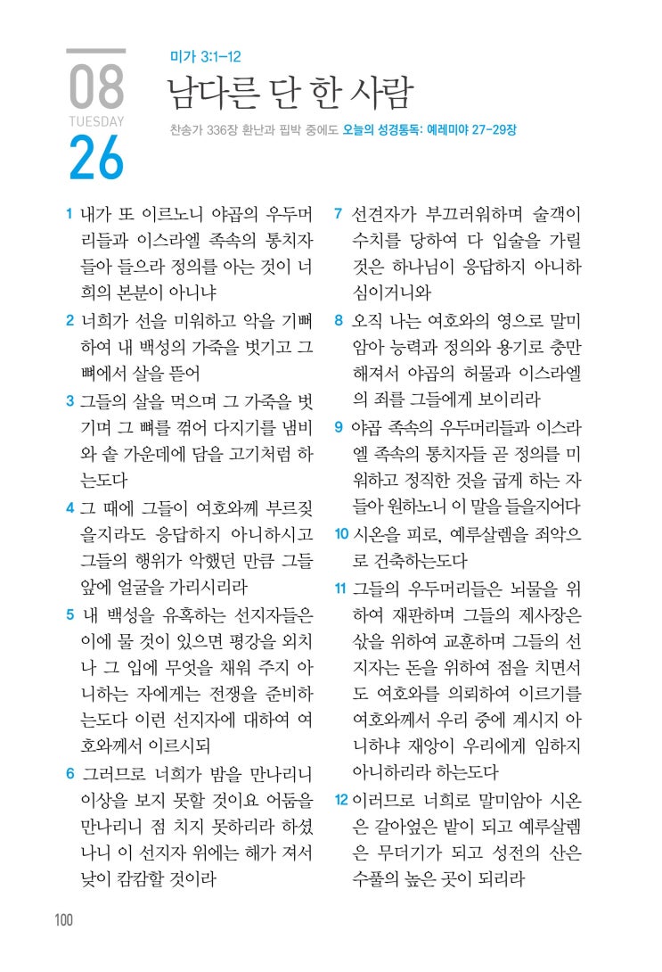 미가 3:1-12 남다른 단 한사람