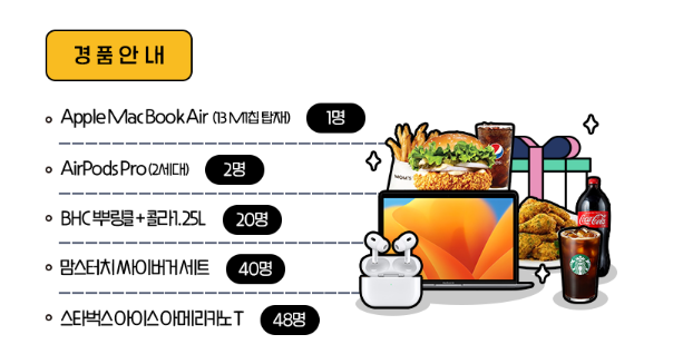 [애플맥북 에어 13, 에어팟프로 2세대, BHC, 맘스터치, 스벅] 무료 경품 응모 추첨 이벤트 국립안동대학교