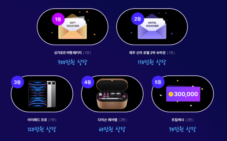 [싱가폴 여행패키지(300만원), 제주 신라호텔 2박 숙박권, 아이패드 프로, 다이슨 에어랩] 무료 경품 응모 추첨 이벤트 트립비토즈 트립캐시