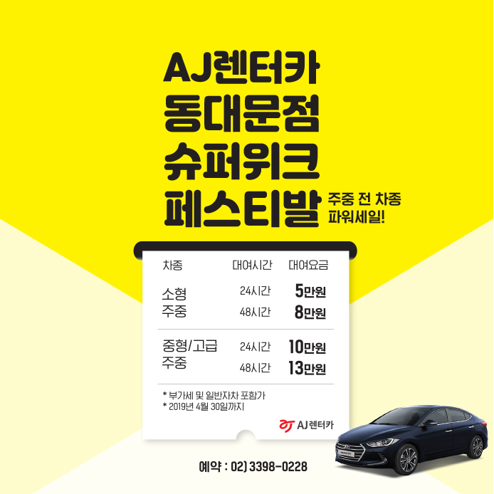 AJ렌터카, 2019 성수기 얼리버드 예약서비스 론칭! 어떤 차든 지금 예약하면 최대 55% 할인! 구해줘, 썸...