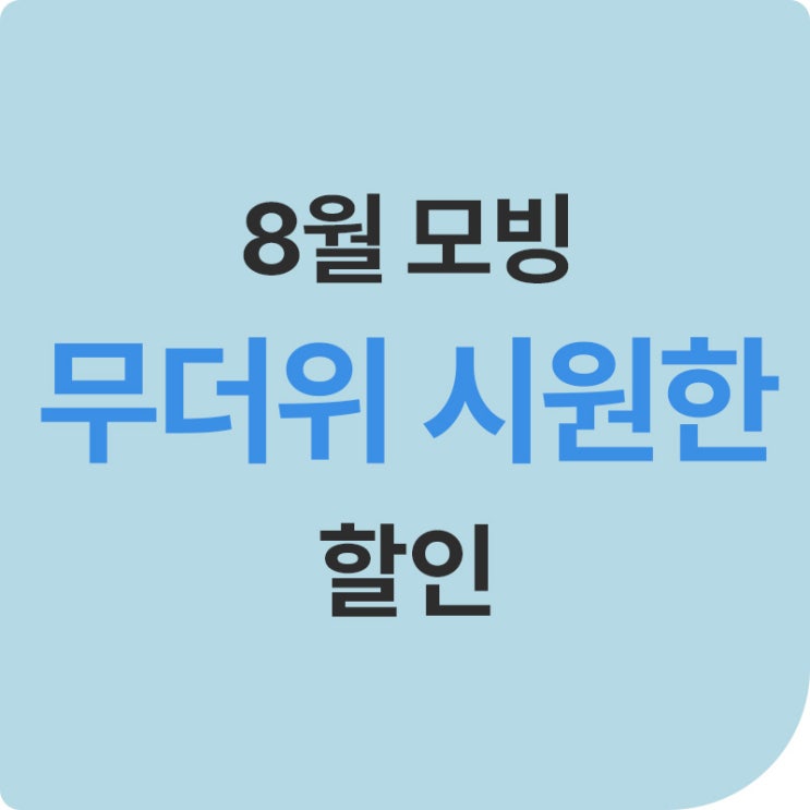 안녕하세요 알뜰한 이동통신 모빙입니다. 뜨거운 여름 8월 시원한 할인 가득한 요금제 소개 드립니다! # 이...