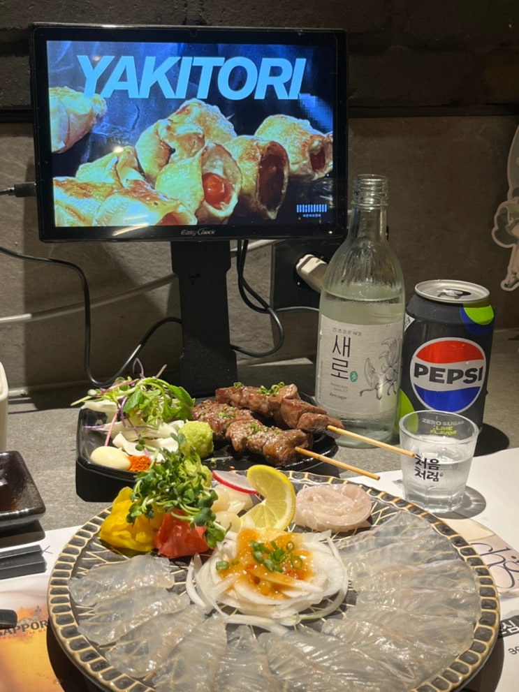 [강남] 강남 야장 술집 일식집 강남술집 추천“야키토리잔잔 압구정로데오점” 에서 광어사시미+소살치살 꼬치+소갈비살 꼬치 데이트 술집 추천