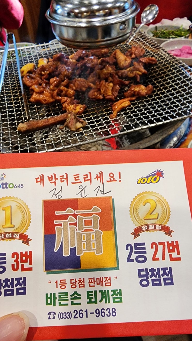 나에겐 로또 메이트가 있다. 오리 고기 먹으면서 복권을 선물해주심. 매주 번호도 공유함 ㅋㅋㅋ 와 작년에...