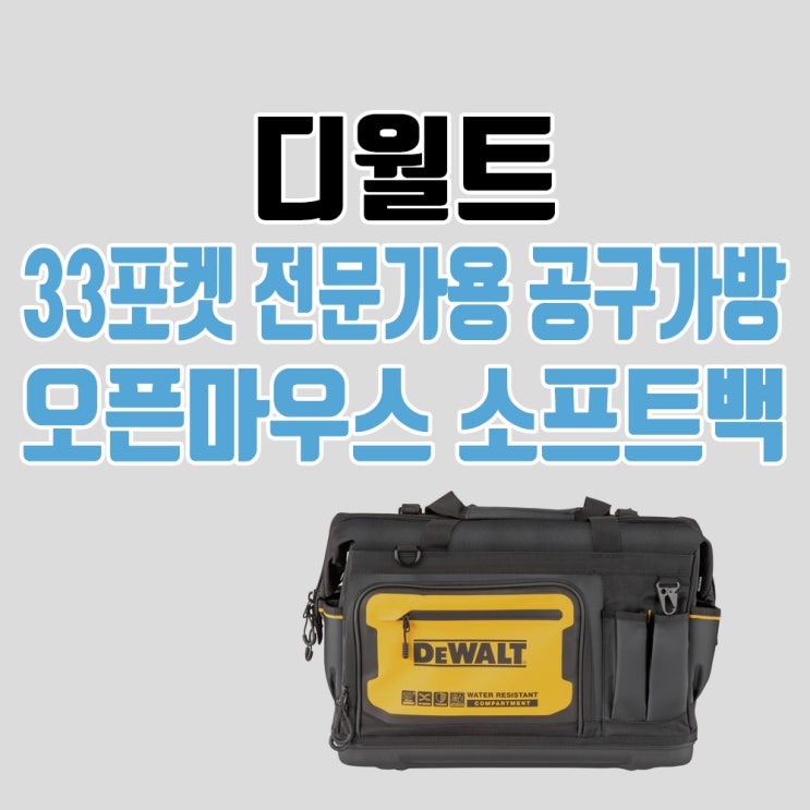디월트 33포켓 넓은 입구 전문가용 공구가방 오픈마우스 소프트백