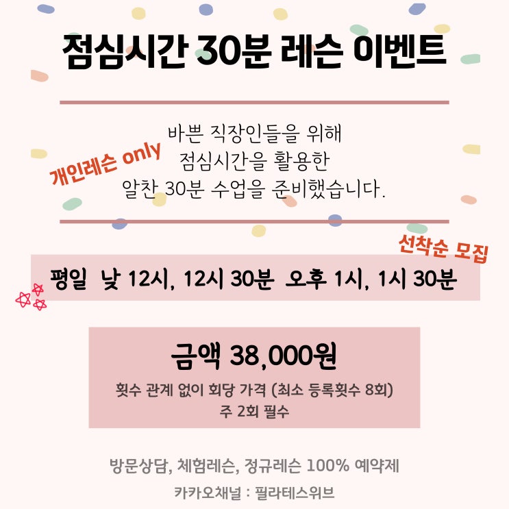 삼송 필라테스 위브 직장인 점심시간 30분 개인레슨 추천대상, 효과, 가격 이벤트