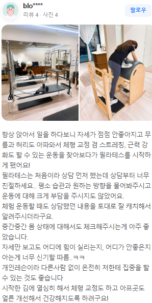 안녕하세요. 삼송 필라테스 위브 원장 정유진입니다 :) 오늘은 회원님들께서 솔직하게 작성해주신 리뷰들을...