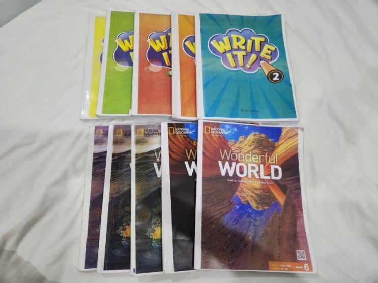 정글어학원 사용교재 리딩은 원더풀월드 라이팅은 라이트 잇. 총 두달동안 다섯권씩 끝냈네요 (중간에 휴일...