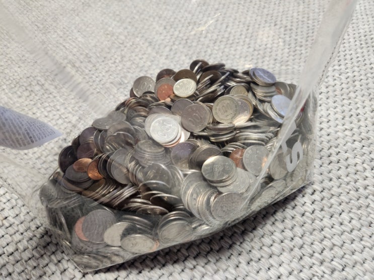 몇년동안 모은 동전들.... 드디어 다 뜯어서 정리하고 은행에 넣기로했다. 집근처 농협 은행에전화하니 동...