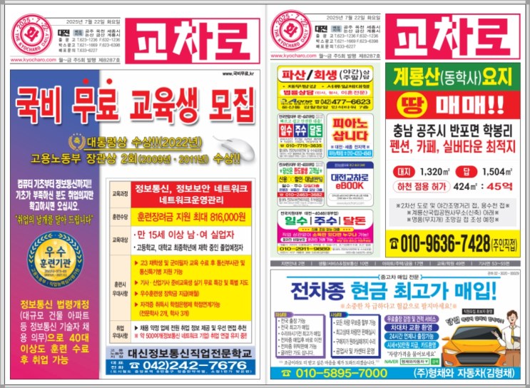 2025년 7월 22일 화요일(제8287호) 대전교차로 종이신문은 10일 전까지 확인하실 수 있습니다. (10일 이전...