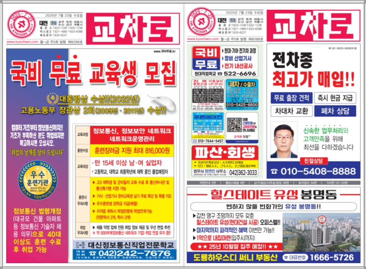 2025년 7월 23일 수요일(제8288호) [대전교차로 종이신문보기]