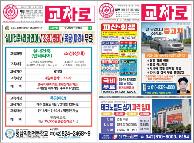 2025년 8월 1일 금/토요일(제8295호) [대전교차로 종이신문보기]