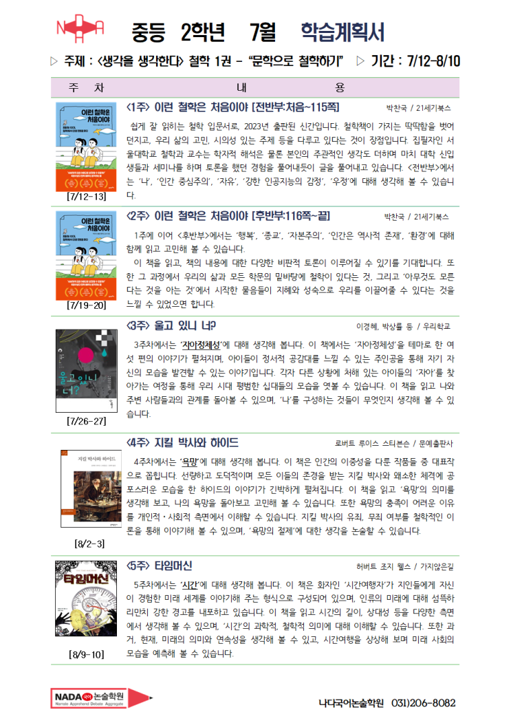 나다만이 할 수 있는 특별한 특강은 많고도 많지만! 역시! 책 특강을 빼놓을 수 없죠. 방학은 너무나 짧고,...