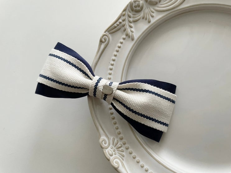 2줄 스트라이프 깔끔 데일리 고급 머리핀 리본 자동핀
