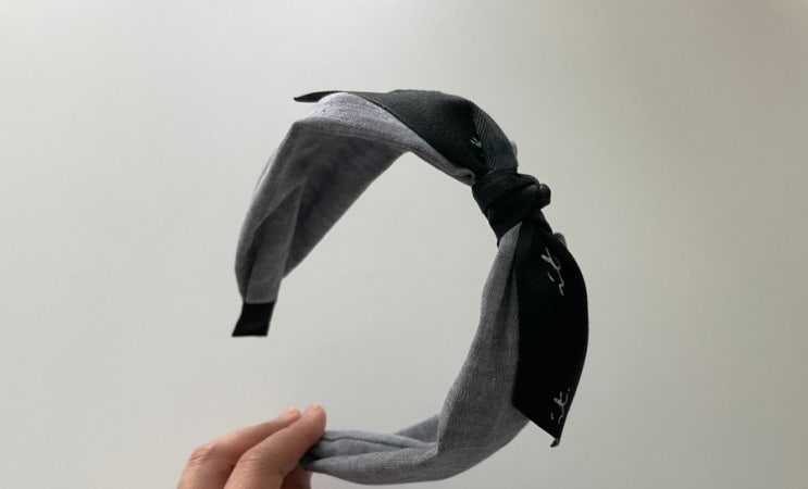 린넨 레터링 그레이 반다나 넓은 머리띠 묶음 헤어밴드