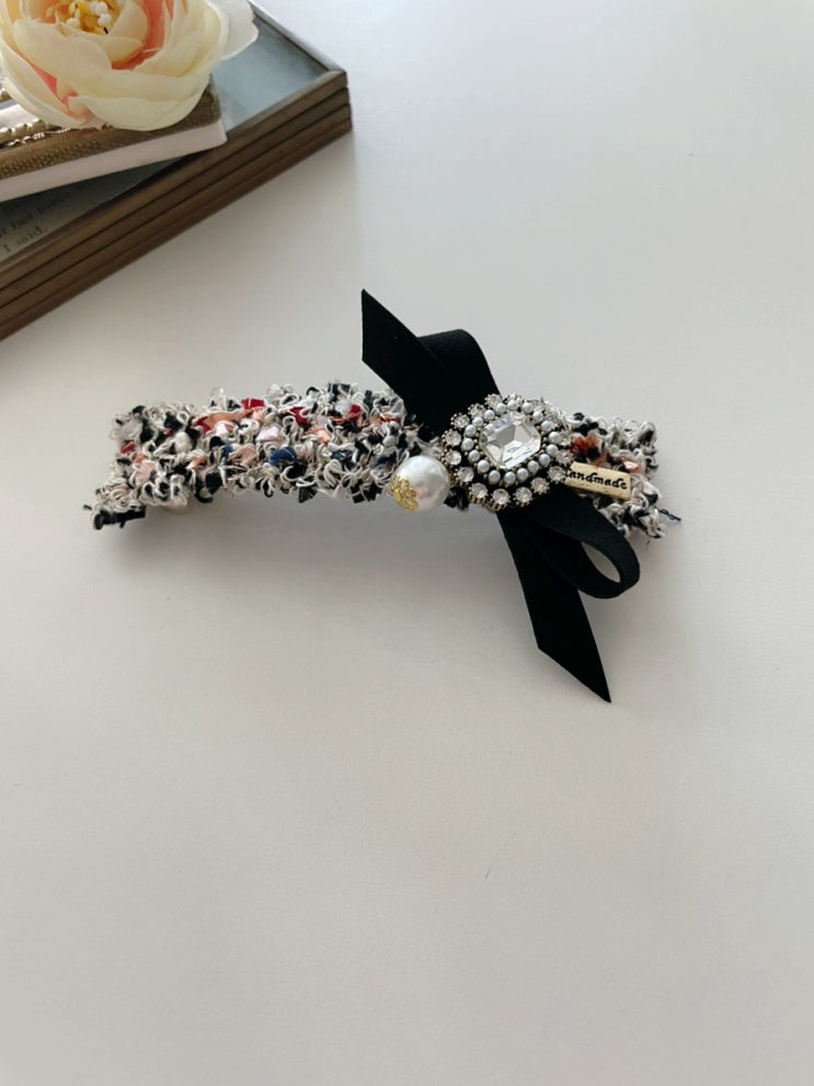 블랙믹스 트위드 리본 헤어핀