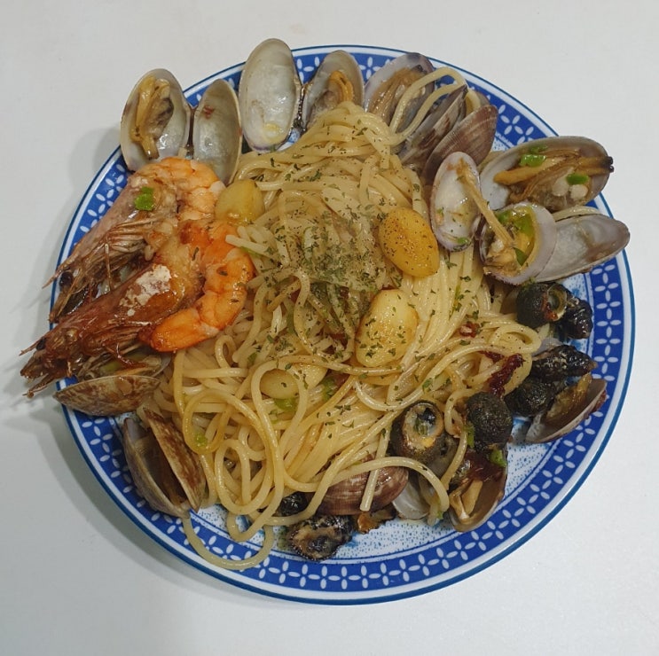 알리오올리오 1. 새우, 바지락 등 냉동 되어있던 해산물 재료는 소금 물에 해동시키며 불순물을 제거해 주...