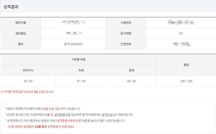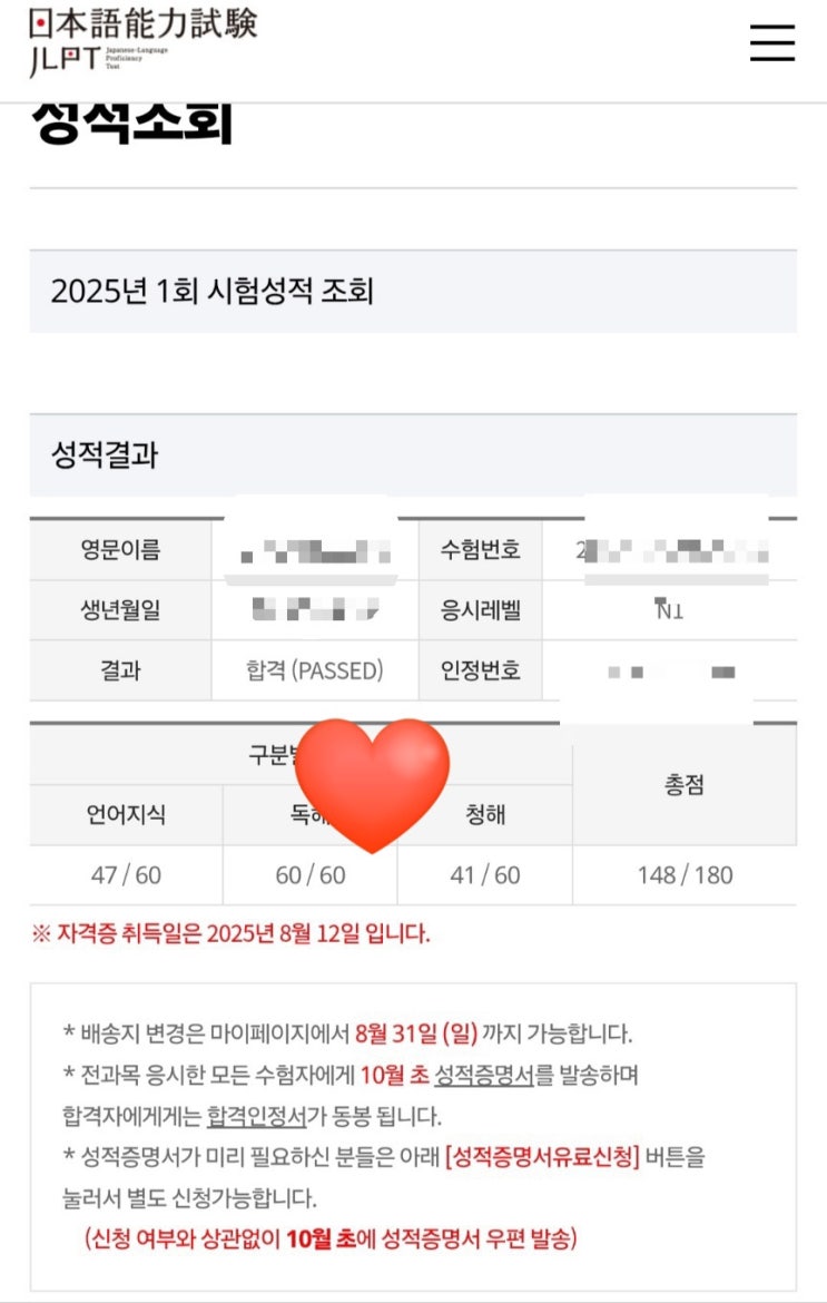 [JLPT]JLPT 결과 n1(1급) 합격 후기