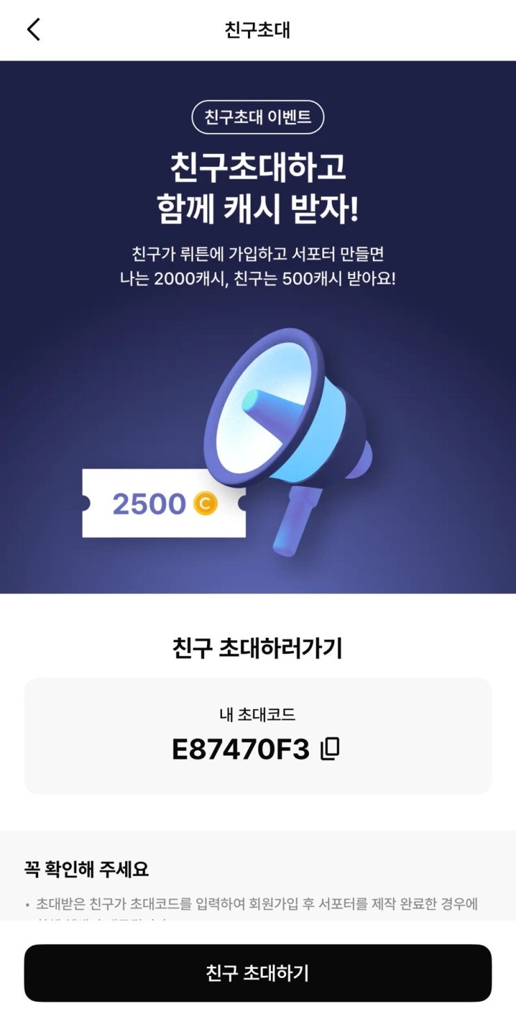 뤼튼 초대코드 추천코드 보는법E87470F3