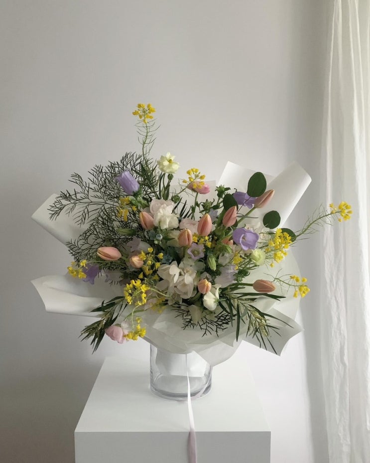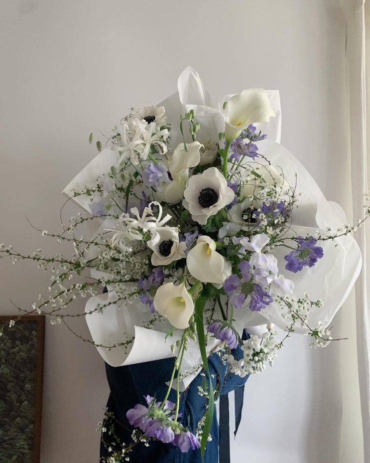이번에 보여드릴 꽃다발은 시즌에만 가능한 꽃다발로 라인이 유독 예쁜 꽃다발이에요 존재감 있는 곱슬이를...