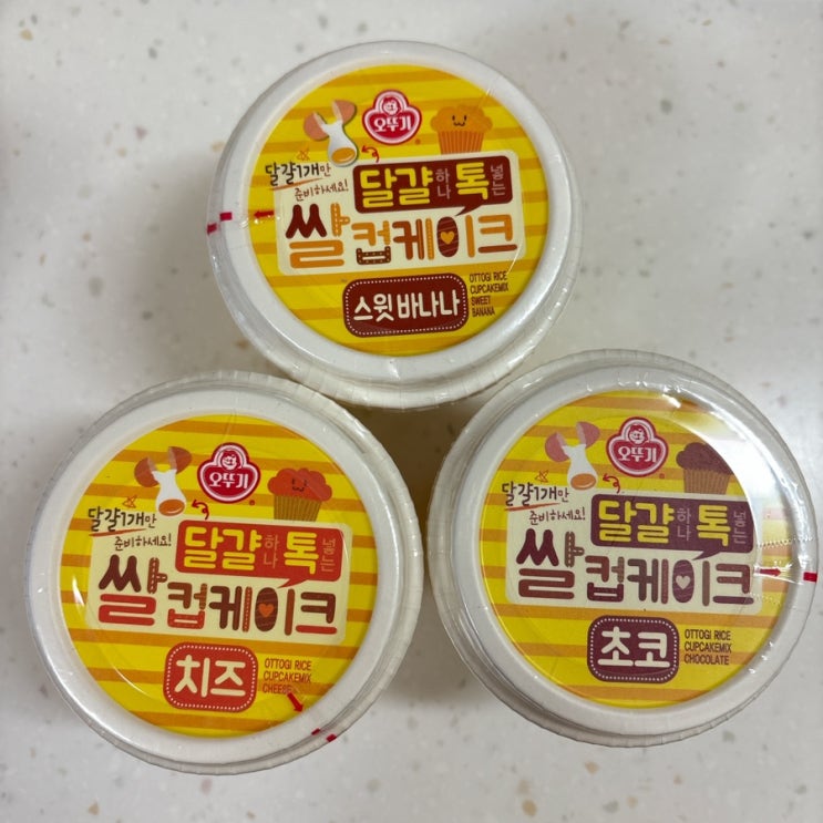 추억의 전자레인지 컵케이크 : 오뚜기 달걀 하나 톡 넣는 쌀컵케이크 초코 치즈 스윗바나나