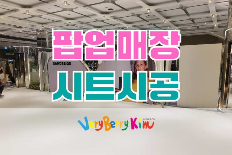 [팝업스토어시공] 부산 센텀 신세계백화점 팝업스토어 4층 방염필름 백월 가벽 시트 시공