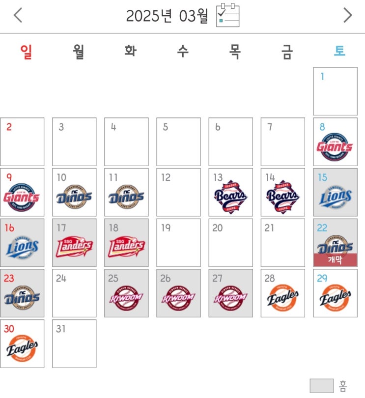 내가 보려고 블로그에 올려놓는 2025 기아타이거즈 일정표 개막 3월 22일 2025 우승 가보자go. 아 야구장 ...