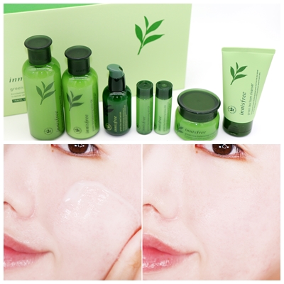 꺅! 푸짐한 구성의 이니스프리 그린티 기초 세트...! 토너 로션 에센스 크림까지, 거기다 기획세트 구성이...