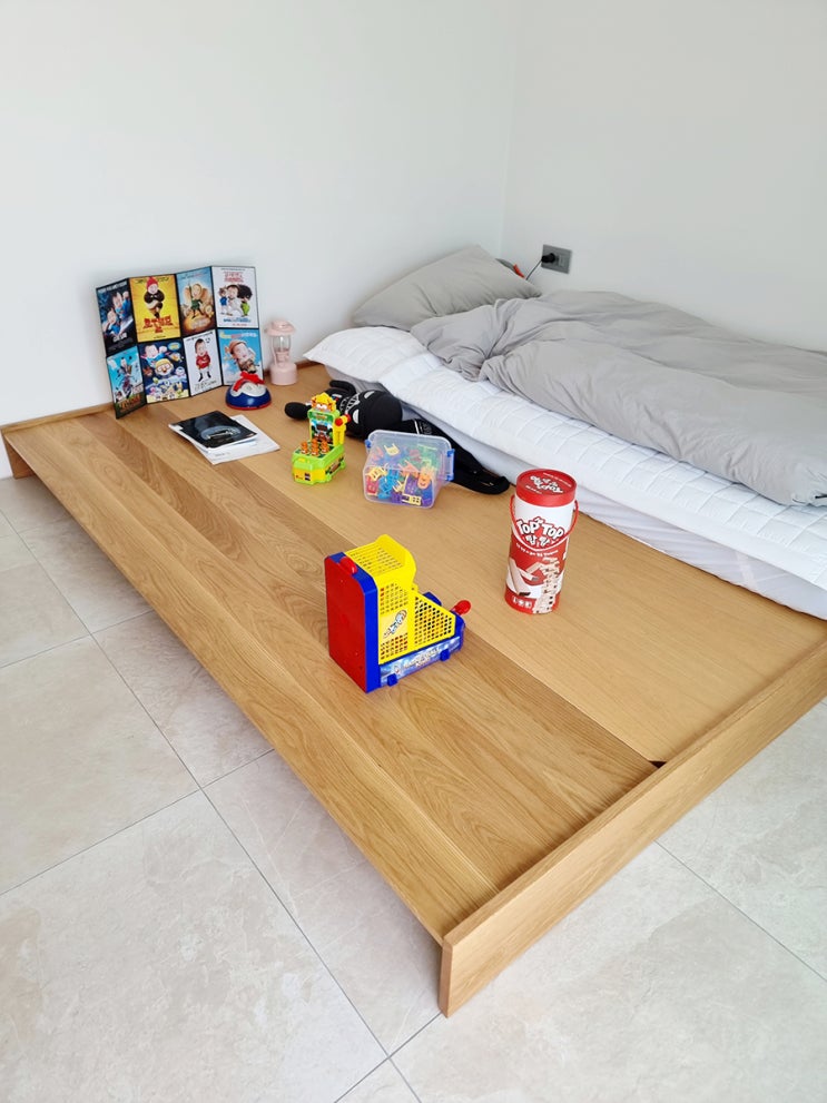 화이트오크 저상형 원목 침대 맞춤제작, 배송완료