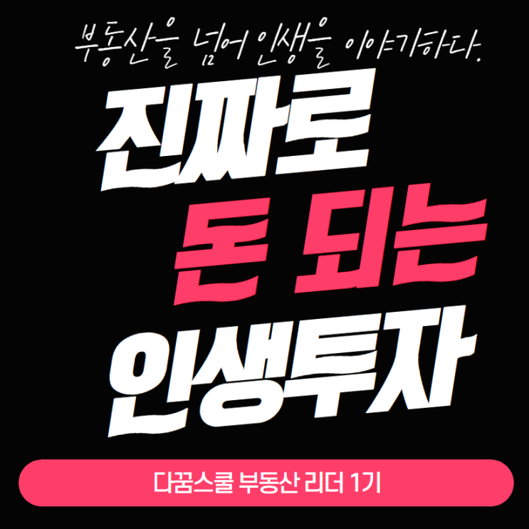 마감되었습니다. 감사합니다. ^^ 부동산을 넘어 인생을 이야기하다. 진짜로 돈 되는 인생 투자 다꿈스쿨 부...