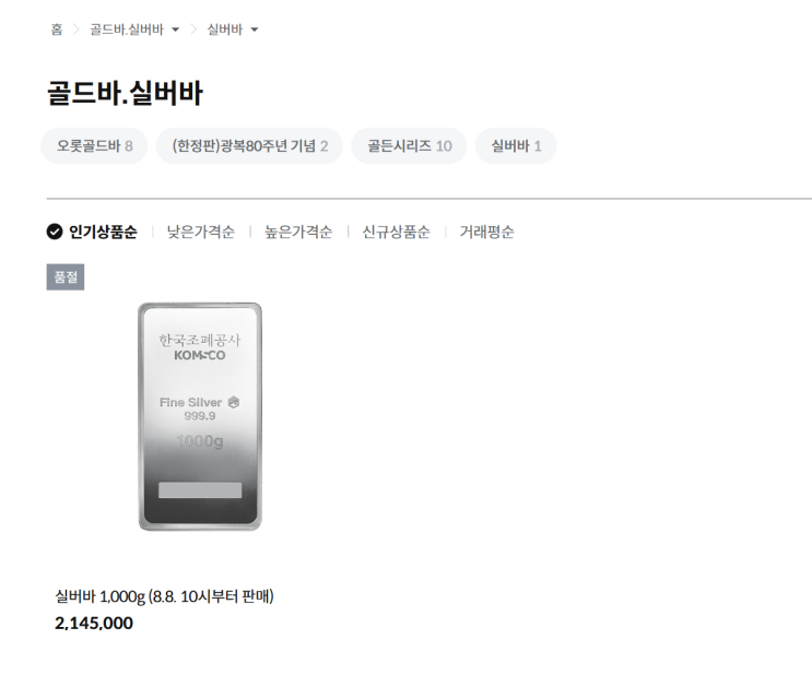 아시아골드 실버바 1kg 100g 시세 봅시다.