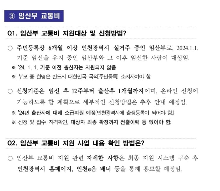 인천 임산부 교통비지원