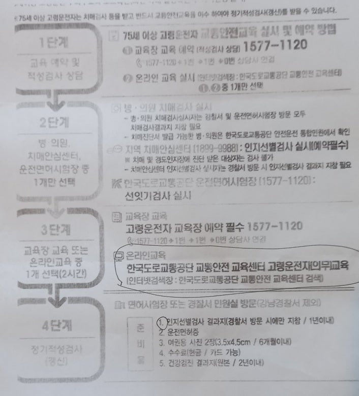 < 75세 이상 고령운전자 면허증 갱신 > 남편이 75이상 운전면허증 갱신을 하게 되었어요. 도시에 사...