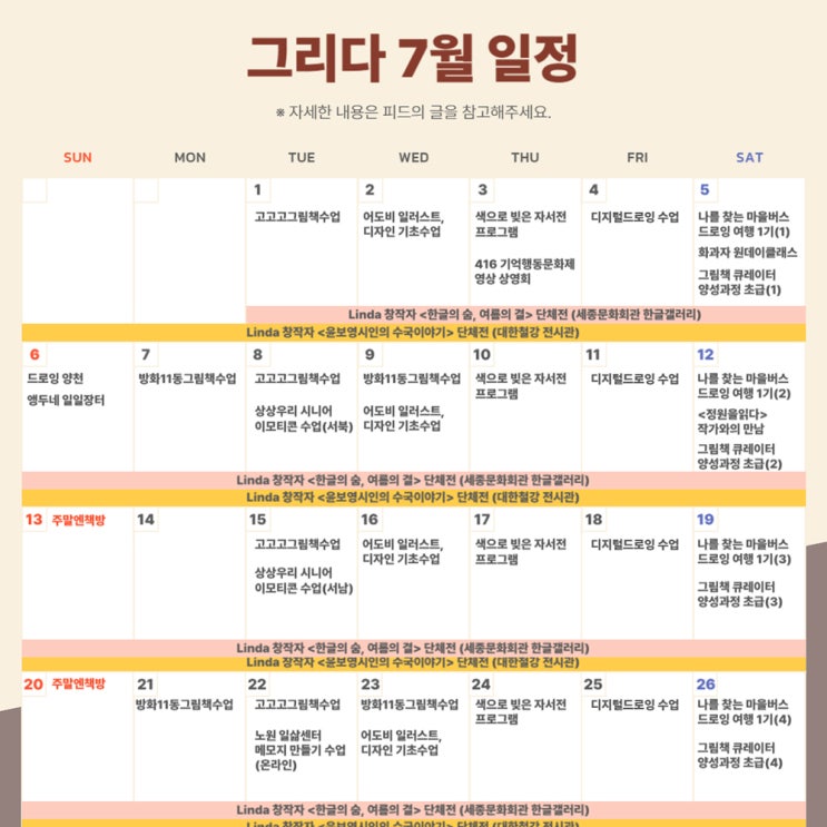 문화예술창작소 그리다 25년 7월 일정 안내 안녕하세요! 그리다 운영지기 몽땅입니다. 이번 달 그리다에서 ...