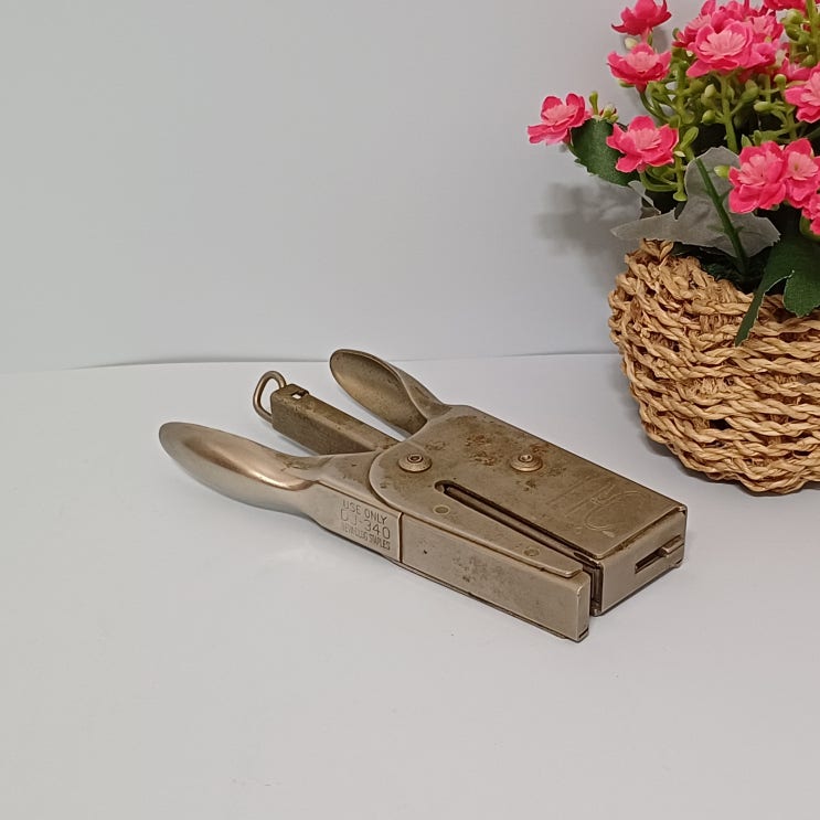 미국 빈티지 핸드 스테이플러 입니다. 일반적인 형태는 바닥에 놓고 사용하는데 이것을 가위 처럼 손으로 ...