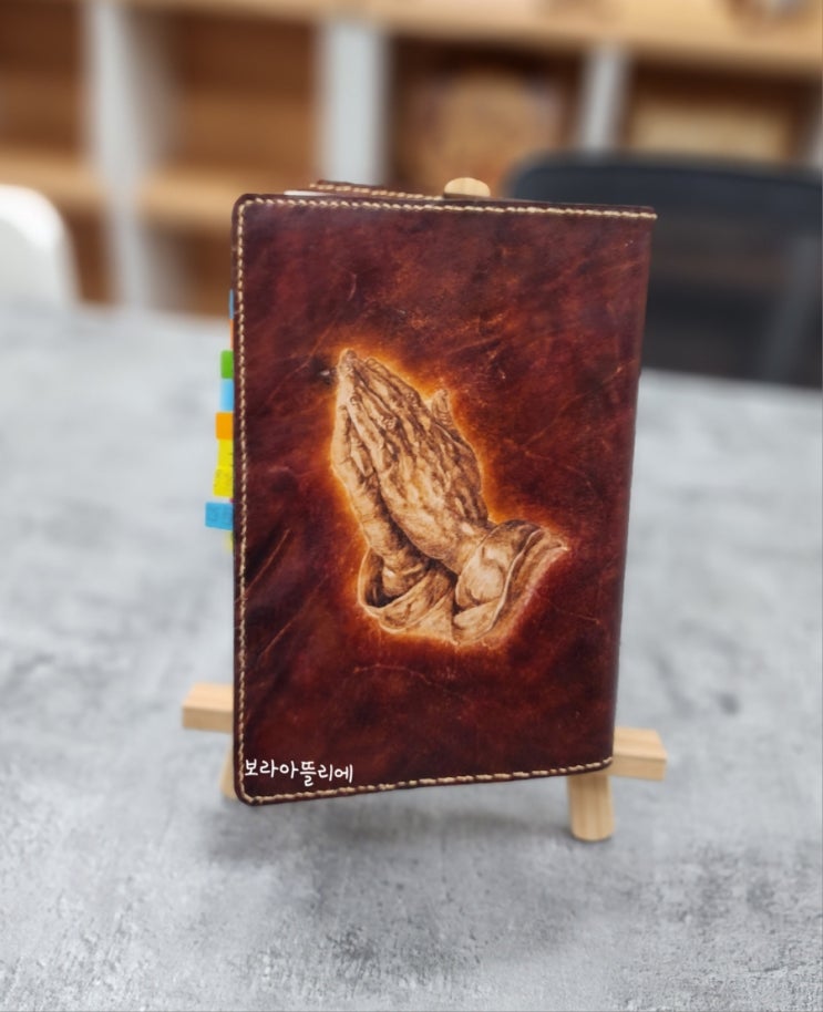 가죽 버닝 나만의 책 커버 가죽 버닝 다이어리 만들기 성경 책 리폼 가죽에 원하는 그림을 버닝해 보았습니...
