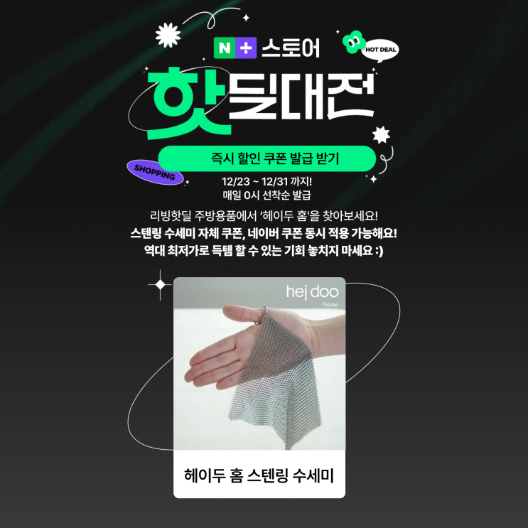 12월 네이버 핫딜대전 선정 | 리빙제품 특가 할인이벤트, 헤이두홈 스테인리스 수세미, 스텐링 수세미 특가할인, 연말이벤트, 네이버쇼핑