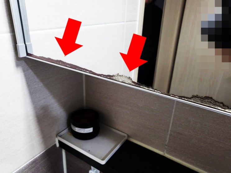 부산화장실거울 녹슨것처럼 검게변한 욕실장유리교체