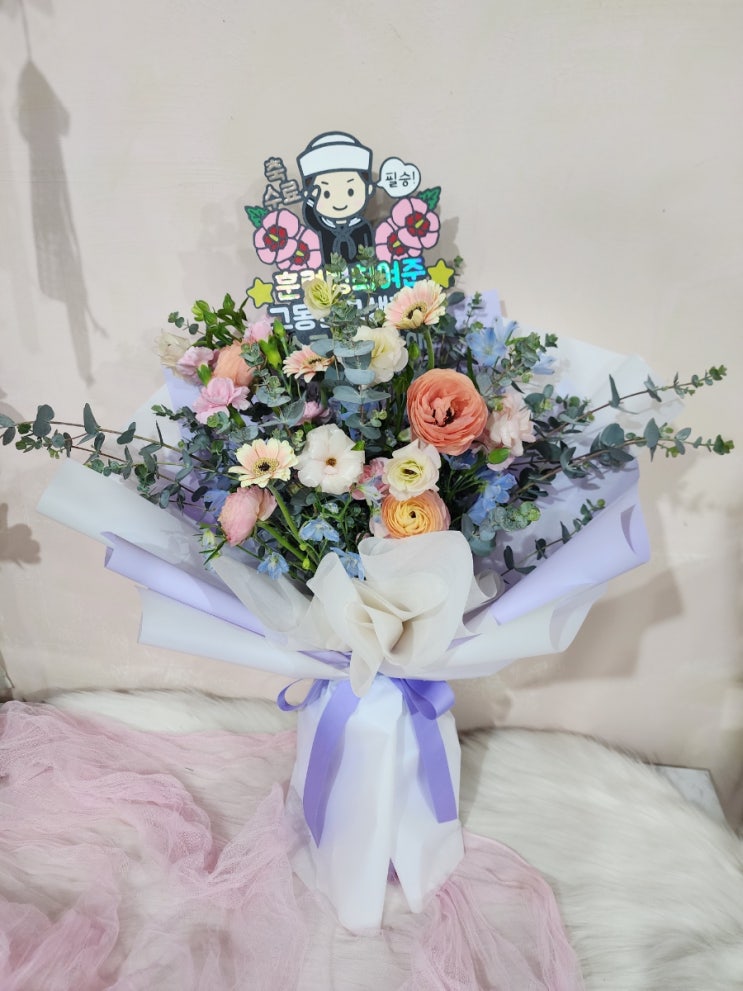 안녕하세요 플라워전문공방 꽃피우다입니다. 오늘 큰따님 친구가 해군훈련소 수료식을 한다네요~~ 급하게 ...