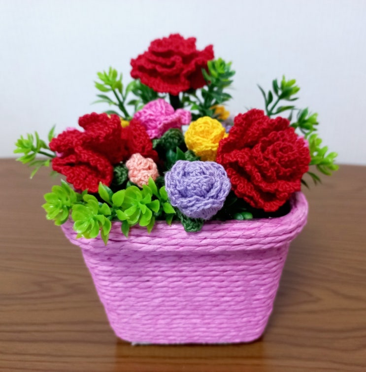 ♧♧♧ 코바늘 손뜨개로 만든 카네이션 꽃바구니 ♡