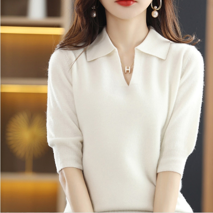 #소프트 #카라 #엘레강스 #모노톤 #니트 #5부 #5부반팔 #반팔 #티셔츠 #여성 #심플 #소프트 #데일리 #단아...