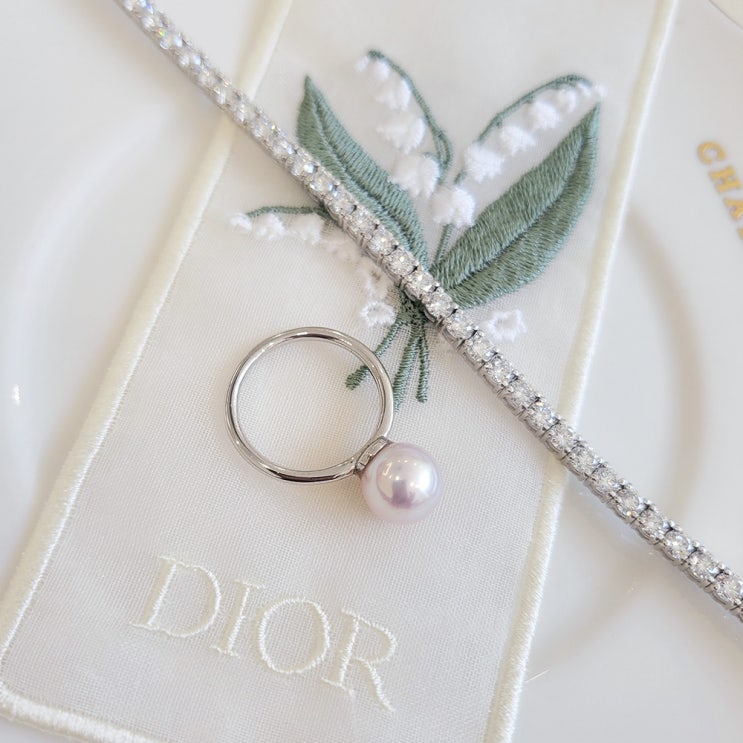 ♥ 마이샬롯 주얼리 업데이트 소식입니다 ♥ 3개의 아코야진주를 직선으로 배치하고 진주 사이에 랩 다이아...