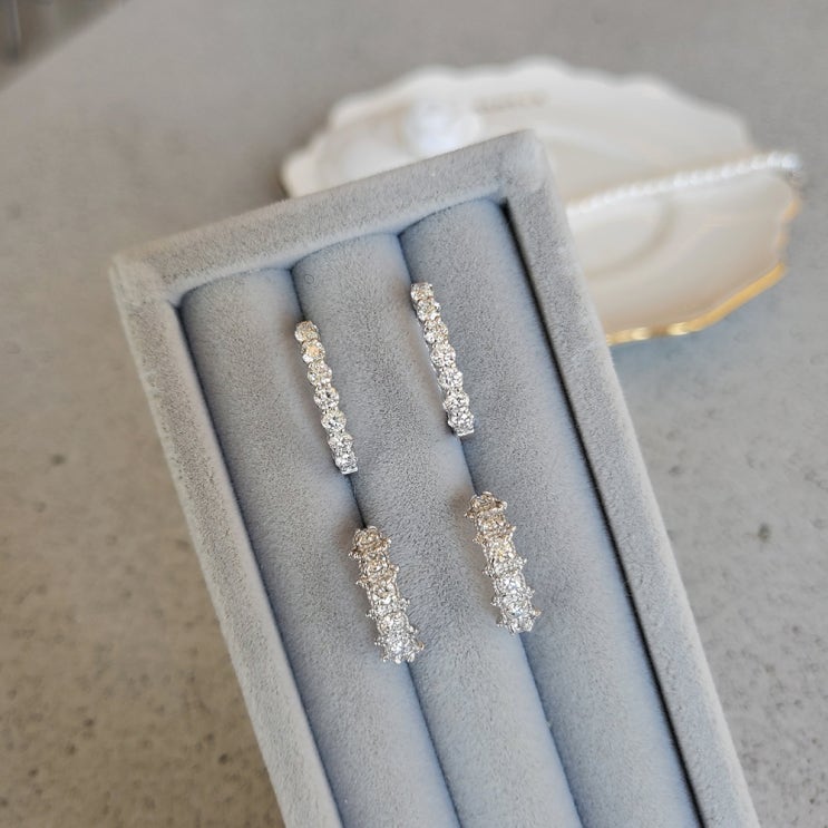 ♥ 마이샬롯 주얼리 업데이트 소식입니다 ♥ 3개의 아코야진주를 직선으로 배치하고 진주 사이에 랩 다이아...