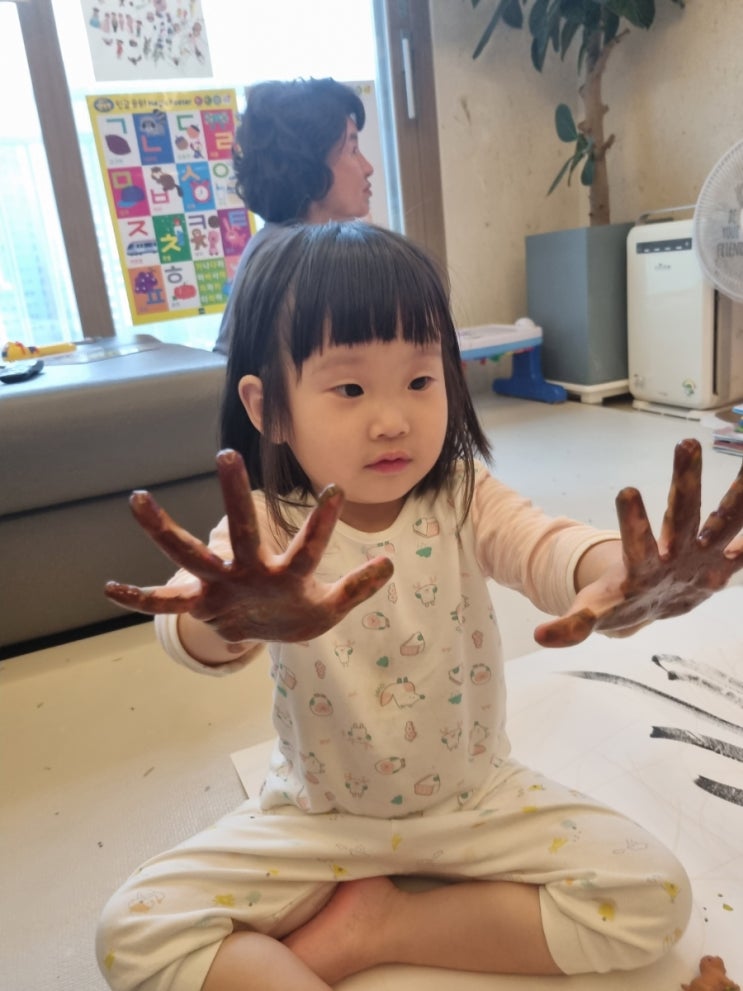 어린이집 물감놀이 너무 열심히 놀았다고 자주 해주시기는 힘들거란걸 너무 잘알지만 물감매니아는 너무 좋...
