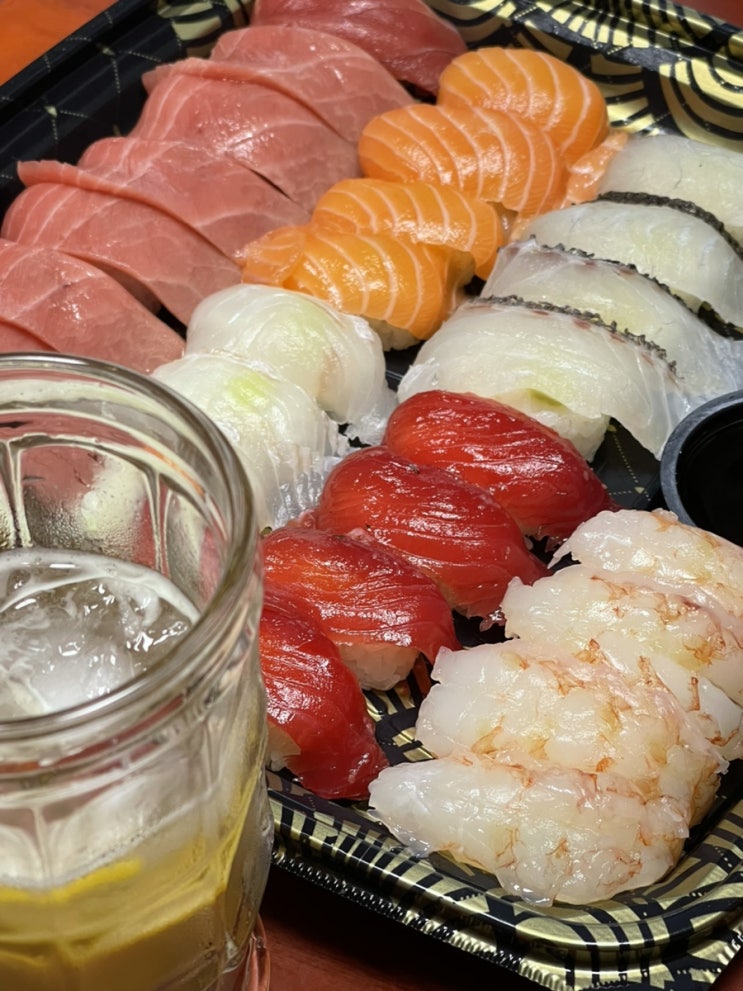 요즘,, 하이볼에 빠져서 아빠가 봄베이 사줬당 ㅎㅋ 광어회도 넉넉히 준비해두고!! 초밥이랑 같이 하이볼 ...