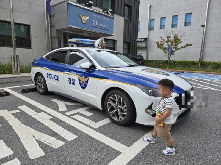 가끔 경찰차 보러가자 졸라대는 몽돌이랑 구경하러 오는 파출소 인데 이제 손이 두툼하니 좀 큰거 같으니 ...