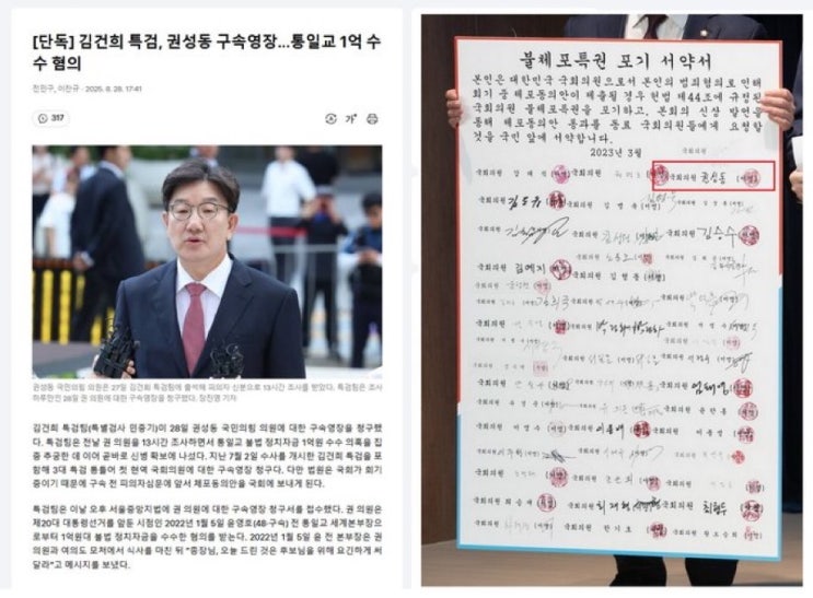 국민의힘 '불체포 특권 포기 서약서' 권성동 싸인 본 - 트위터 퍼 옴 곧 빵에 갈 권성동을 위해....